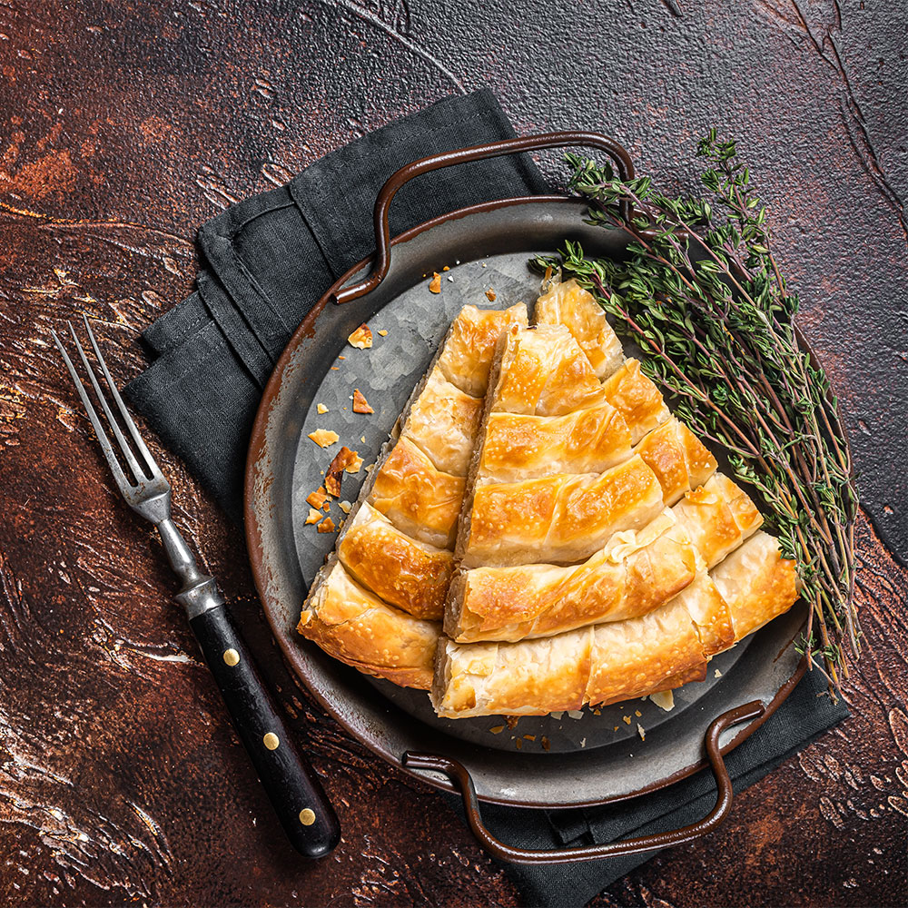 - Burek od tučetine serviramo na plitke porculanske tanjire ili činije.