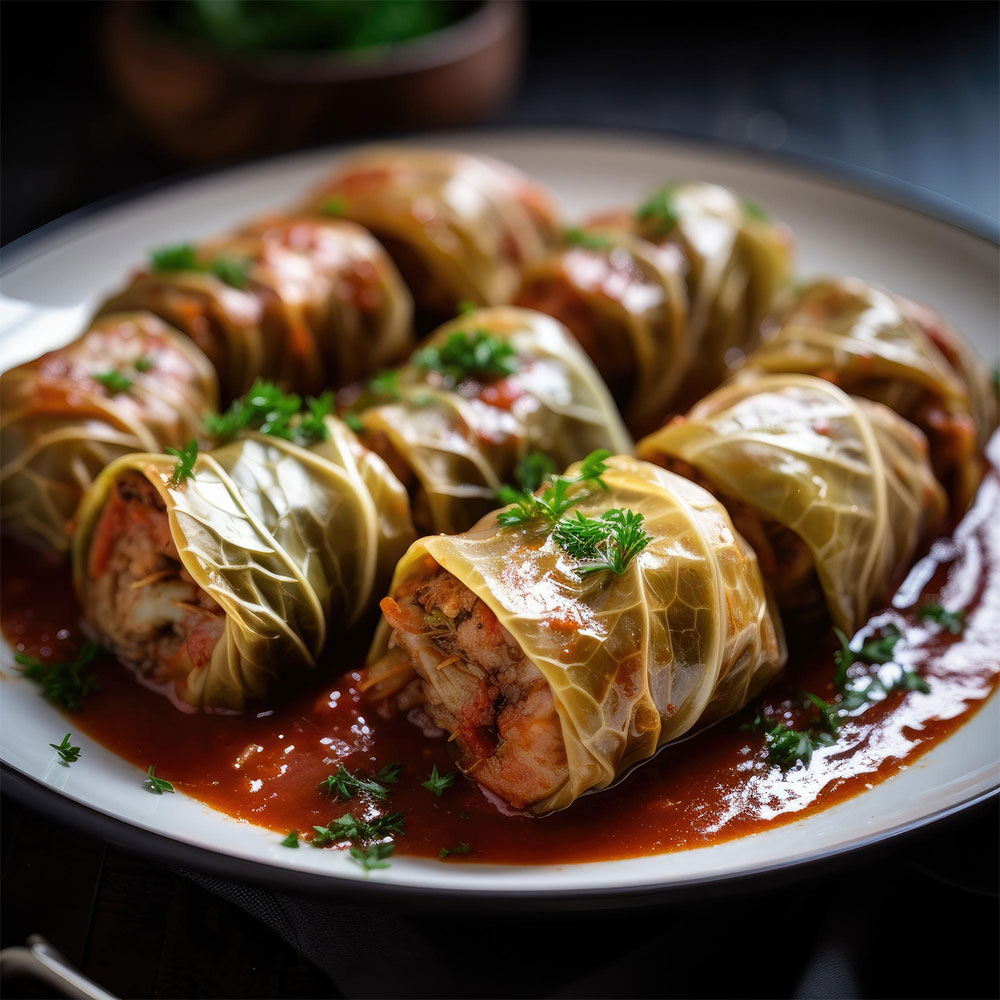 - Stavljamo malo smjese od faširanog mesa u sredinu, savijemo lijevu i desnu stranu, zatim motamo sarmu ka dnu u rolnu.